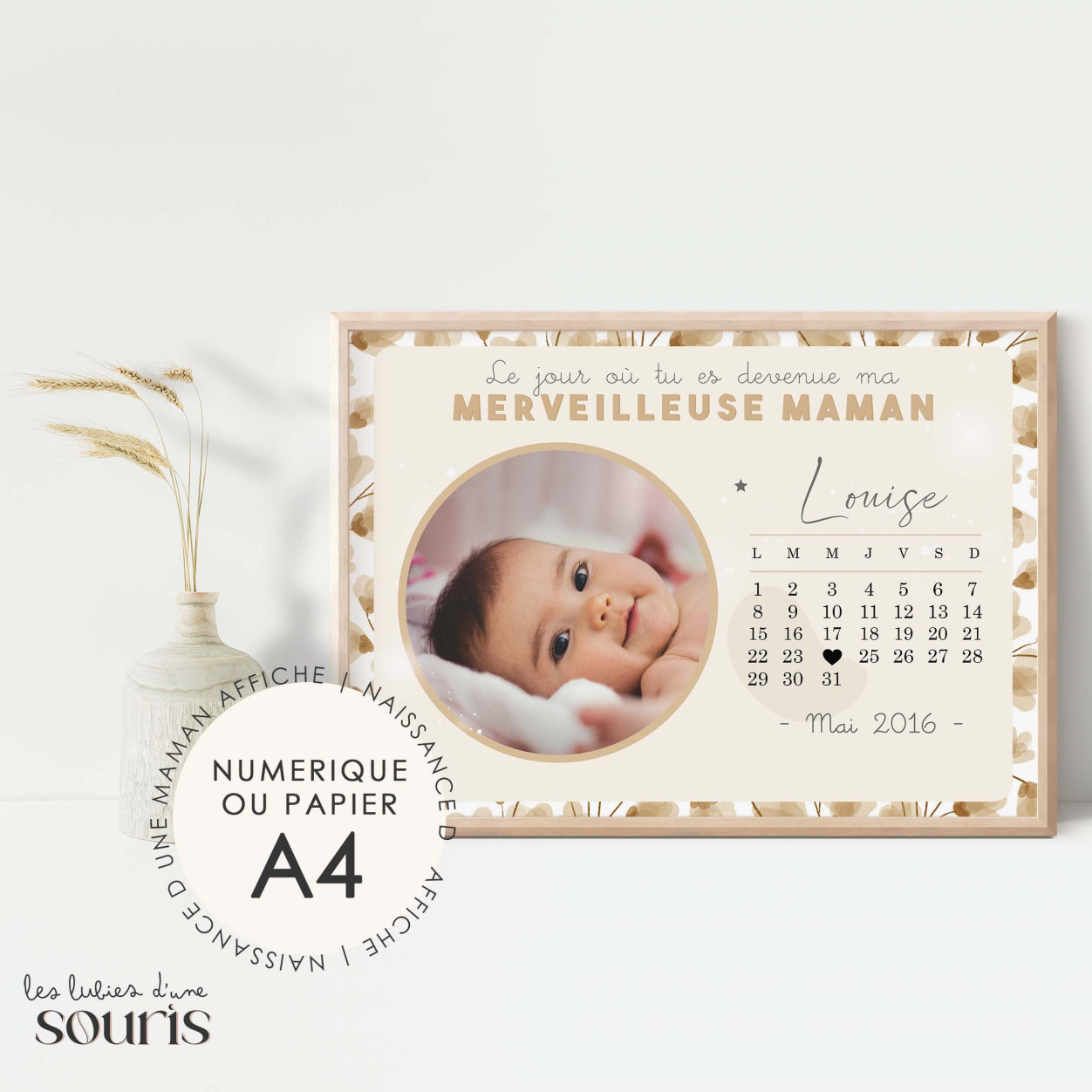 L’affiche « naissance d’une maman », retranscris cette, ces dates inoubliables.