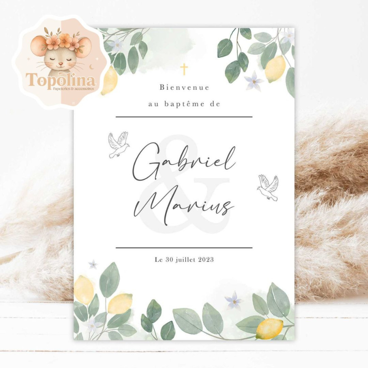 AFFICHE BIENVENUE ANNIVERSAIRE OU BAPTÊME – AFFICHE PERSONNALISÉE AVEC PRÉNOM ET DATE - THÈME : DOLCE VITA / CITRON