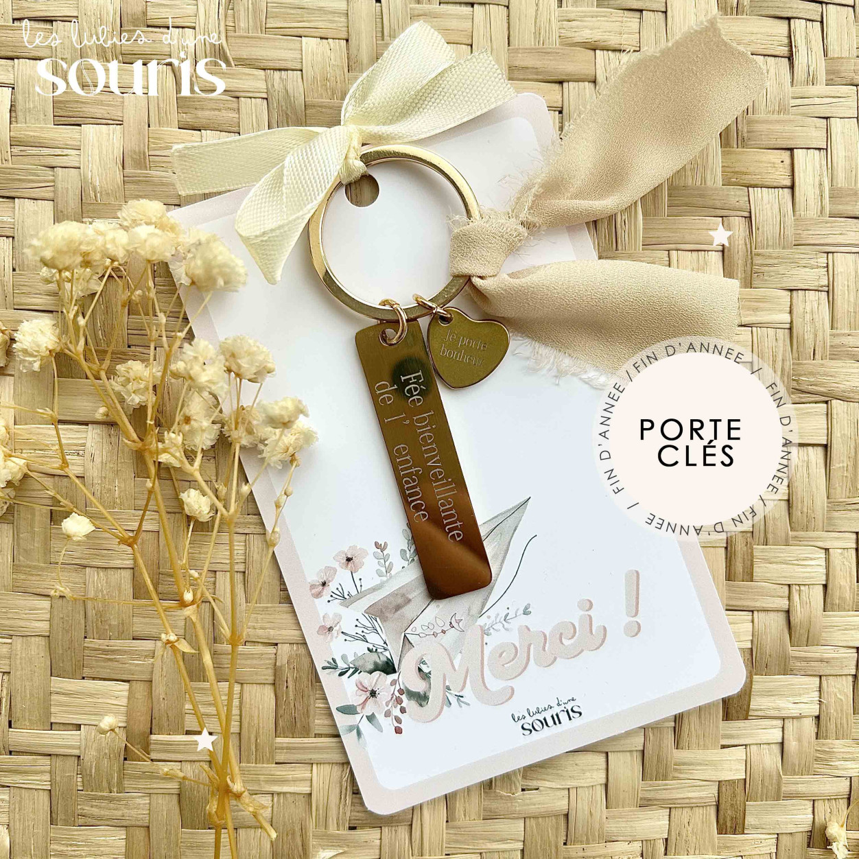 Ce porte-clé doré est une délicate attention à offrir à une maîtresse, une ATSEM, une nounou ou toute fée bienveillante de l’enfance.