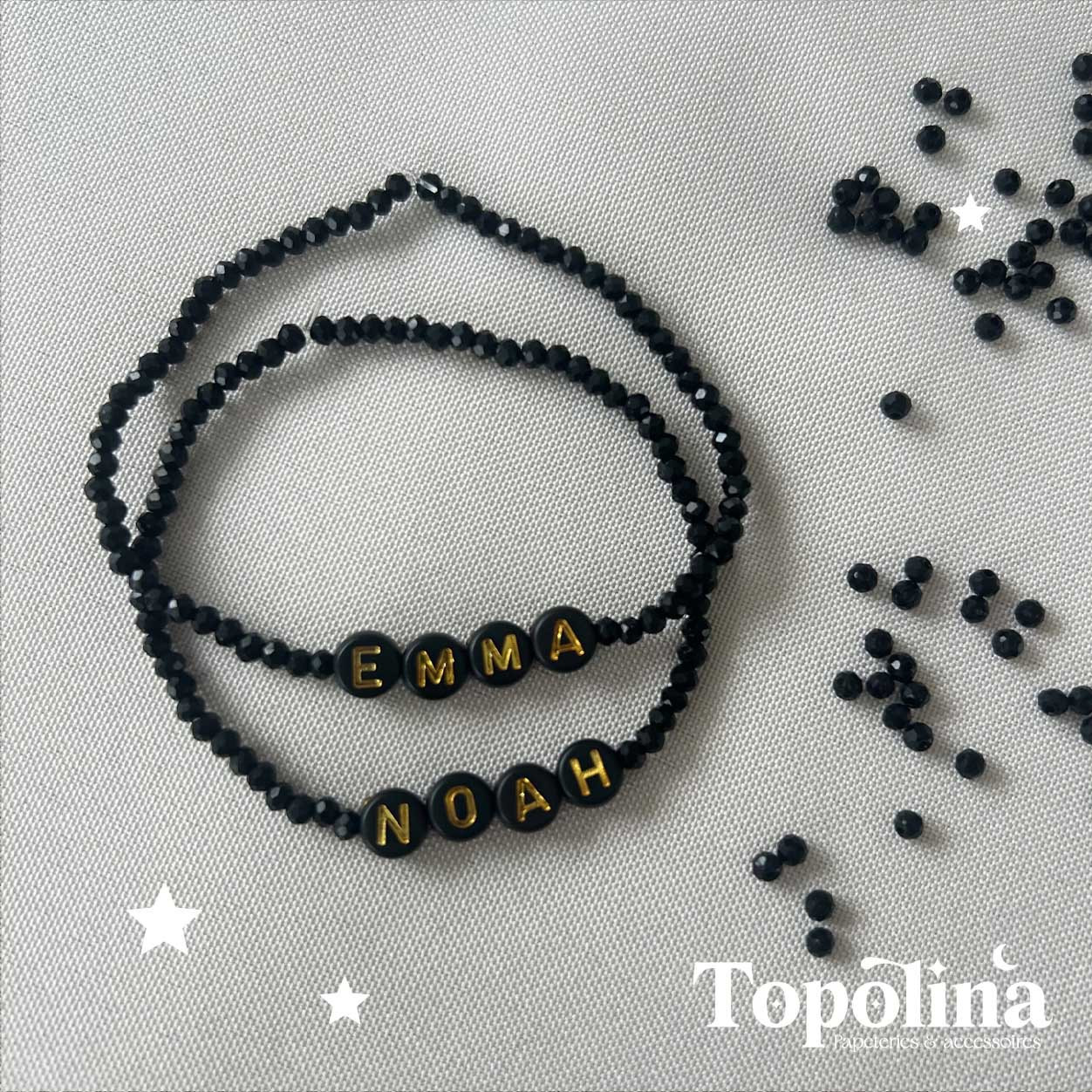 Chaque bracelet est personnalisable avec le texte de votre choix : prénom, mot doux, initiale(s) ou message symbolique.