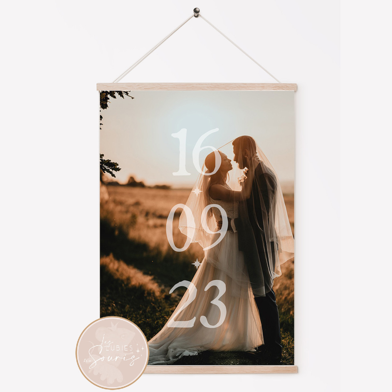 Que ce soit pour célébrer votre mariage, un anniversaire ou simplement l’amour qui grandit chaque jour, notre affiche capture l’essence même de l’amour éternel.
