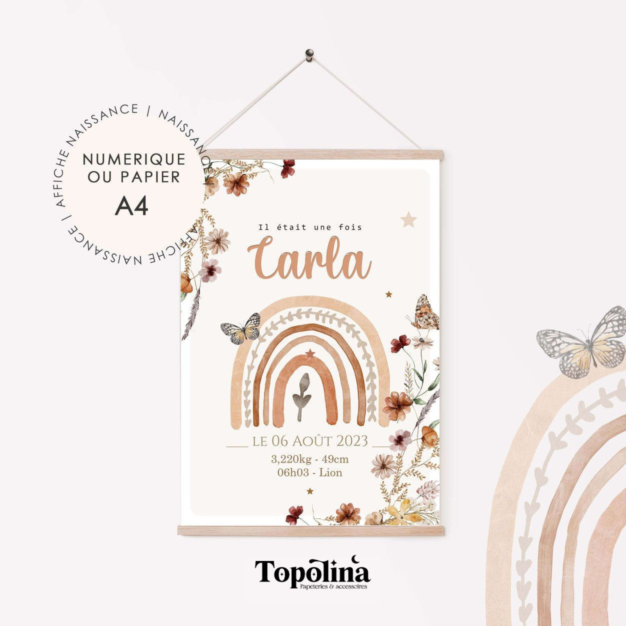 Personnalisation : Prénom, date et heure de naissance, poids, taille… chaque détail compte pour créer une affiche unique.