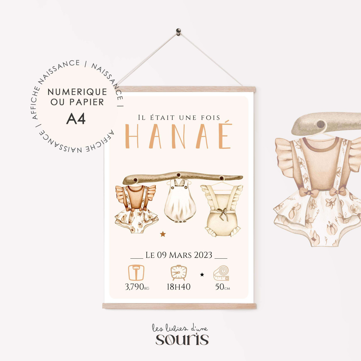 Personnalisation : Prénom, date et heure de naissance, poids, taille… chaque détail compte pour créer une affiche unique.