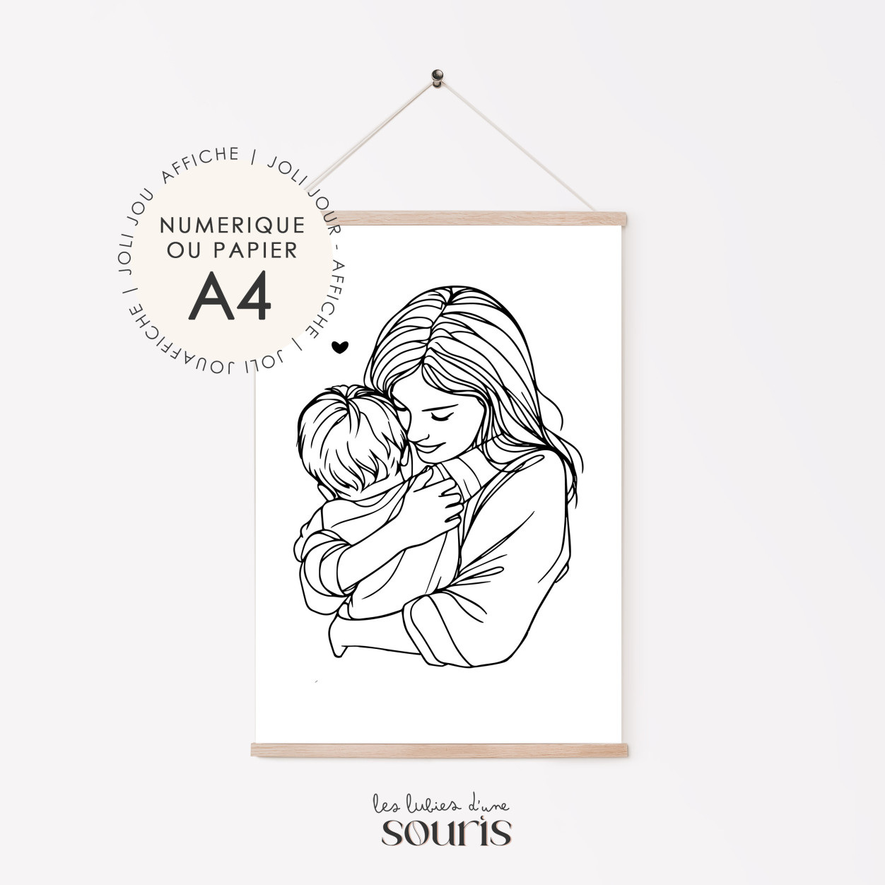 Cette affiche émotive capture le lien unique entre une maman et son enfant. Avec une illustration douce et pleine de tendresse, elle représente une maman entourant son fils, un moment symbolique de protection et d’amour. Chaque affiche est personnalisée avec la date de naissance de l'enfant, transformant ainsi ce cadeau en un souvenir précieux, ancré dans le temps. Parfaite pour célébrer une naissance, un anniversaire, ou simplement immortaliser un moment spécial, cette affiche ajoute une touche personnelle et émotive à n'importe quelle pièce.