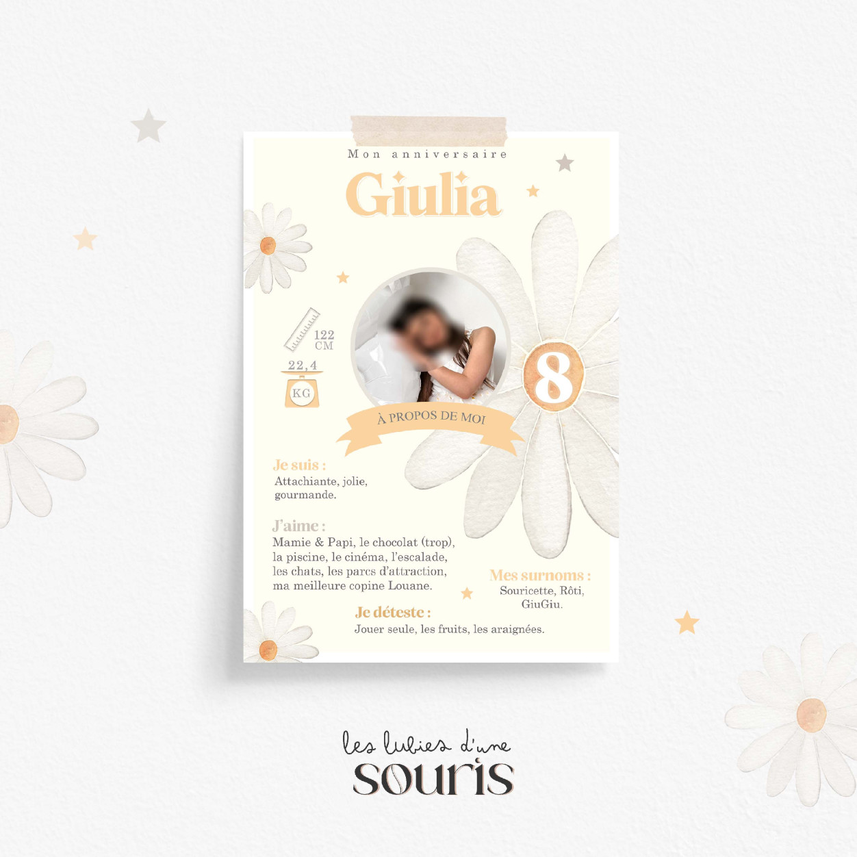 Personnalisez votre affiche avec votre texte et remplissez de petites anecdotes en fonction de son âge.