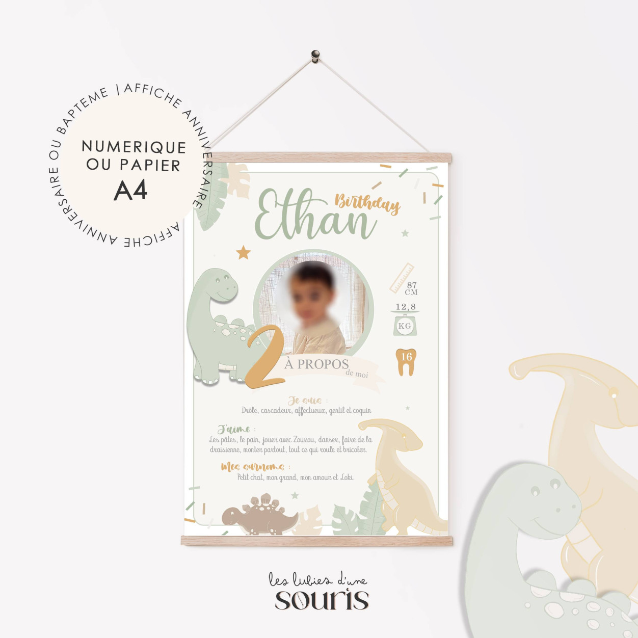 ★ Affiche anniversaire/baptême | Joyeux Anniv’Rex | DinoParty !