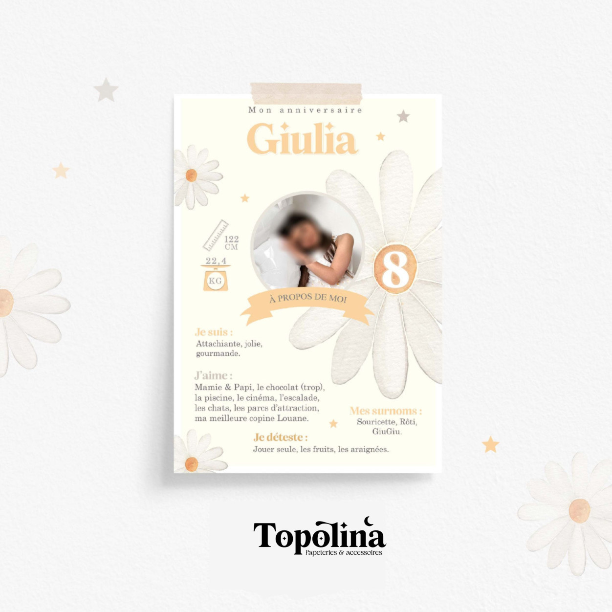 Personnalisez votre affiche avec votre texte et remplissez de petites anecdotes en fonction de son âge.