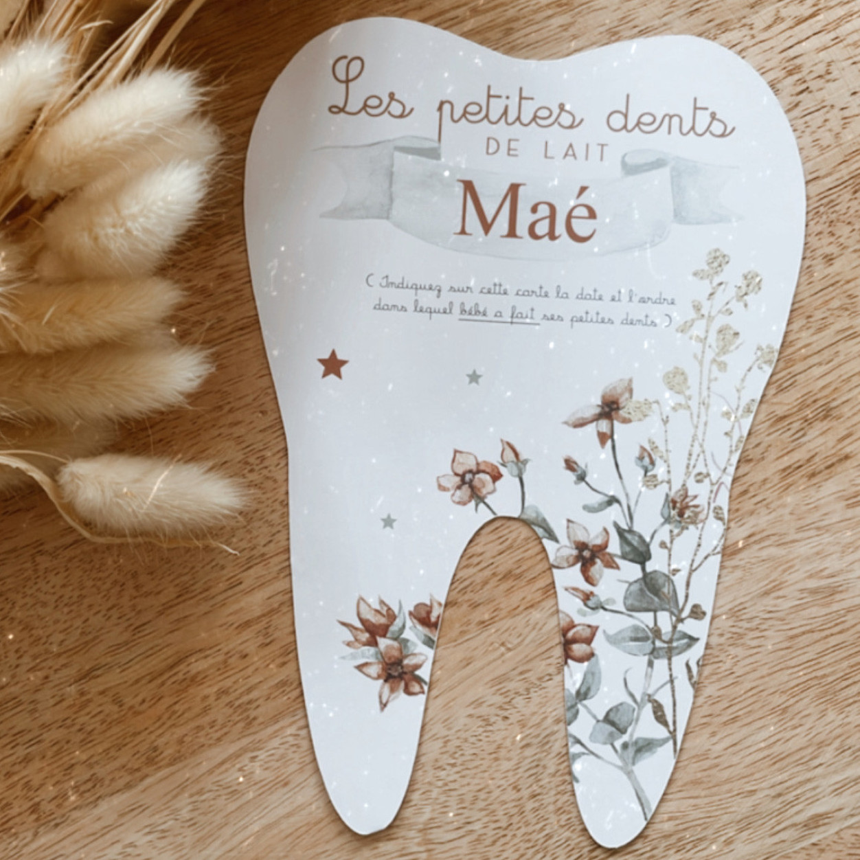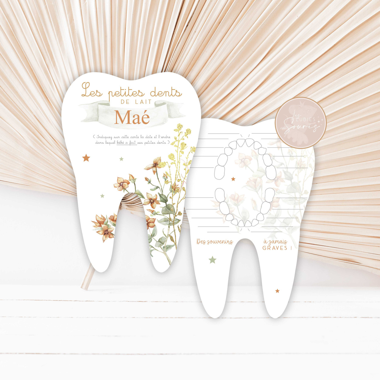 La Carte Quenottes vous servira à garder un souvenir intemporel de l'ordre d'arrivée des dents de votre bébé, ou également l'ordre de perte des dents de lait, en y inscrivant la date au dos et le numéro correspondant dans la dent.
