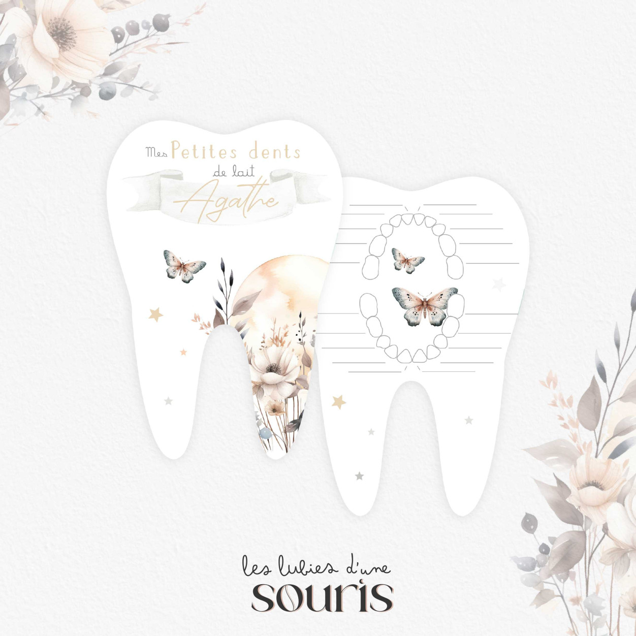 La Carte Quenottes vous servira à garder un souvenir intemporel de l'ordre d'arrivée des dents de votre bébé, ou également l'ordre de perte des dents de lait, en y inscrivant la date au dos et le numéro correspondant dans la dent.