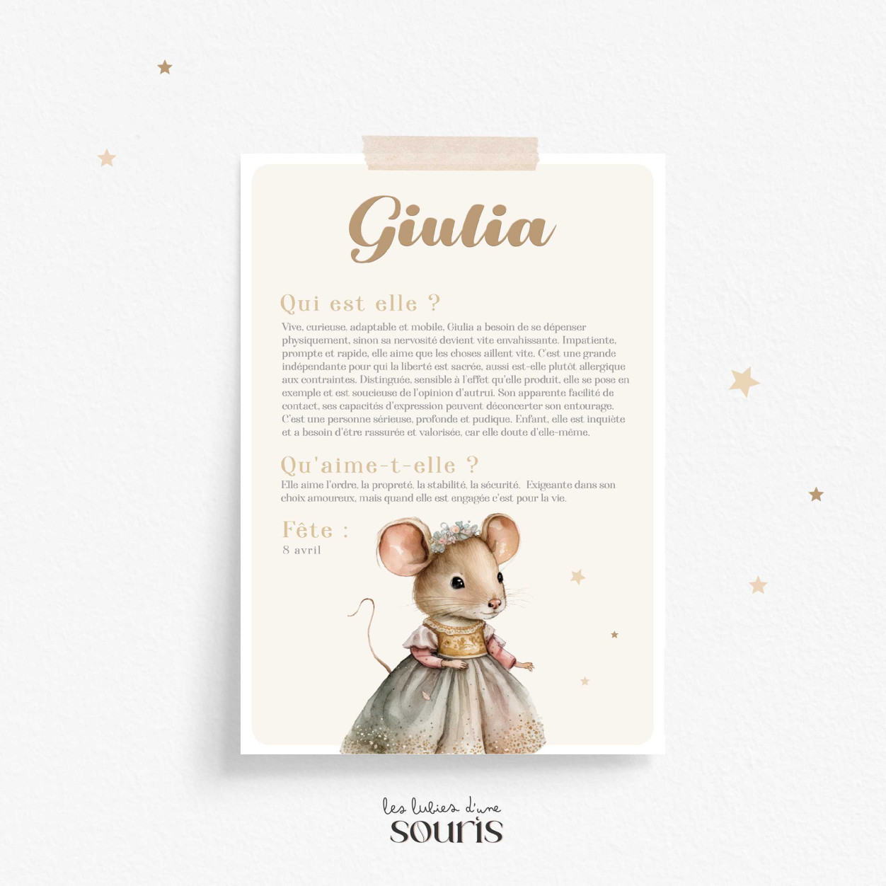 Affiche signification du prénom, le caractère ainsi que la fête correspondante au prénom choisi.