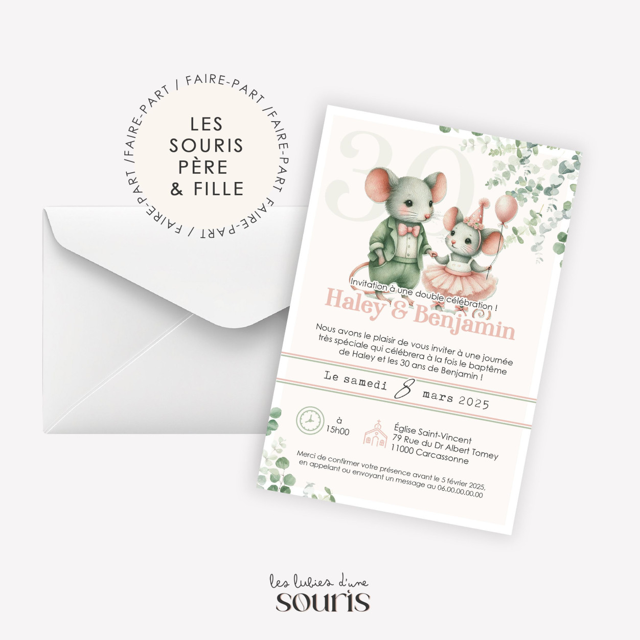 ★ Invitation & Faire part | Format carte postale | Les souris, père & fille