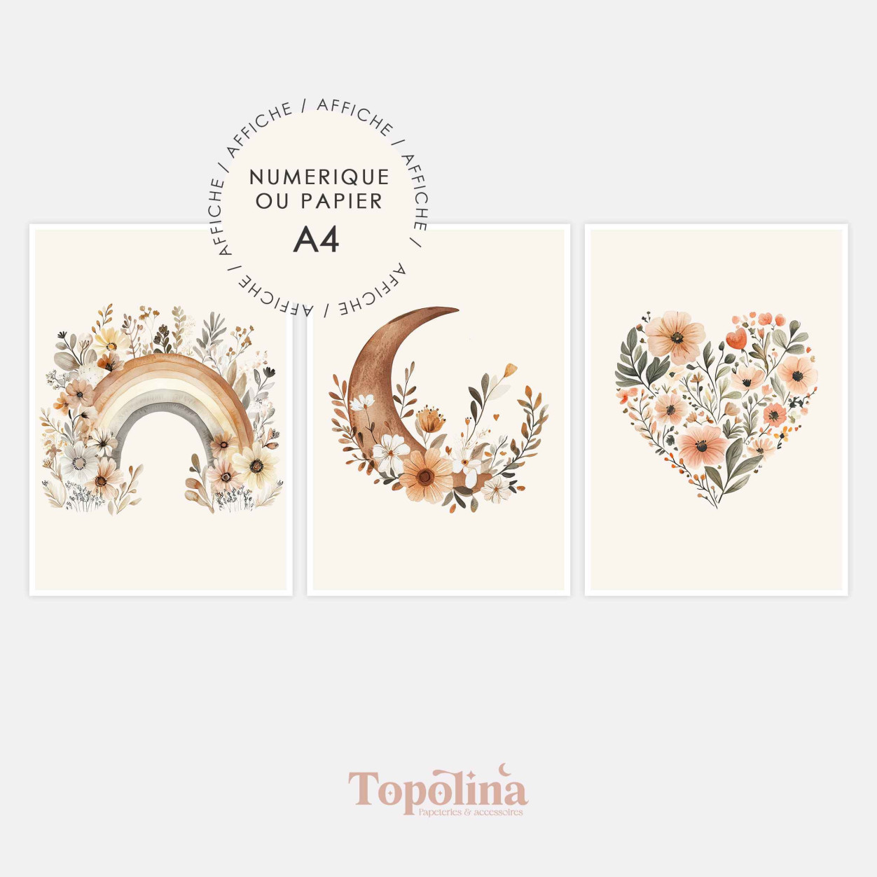Avec leurs couleurs harmonieuses et leurs illustrations délicates, ces affiches s’intègrent facilement dans :