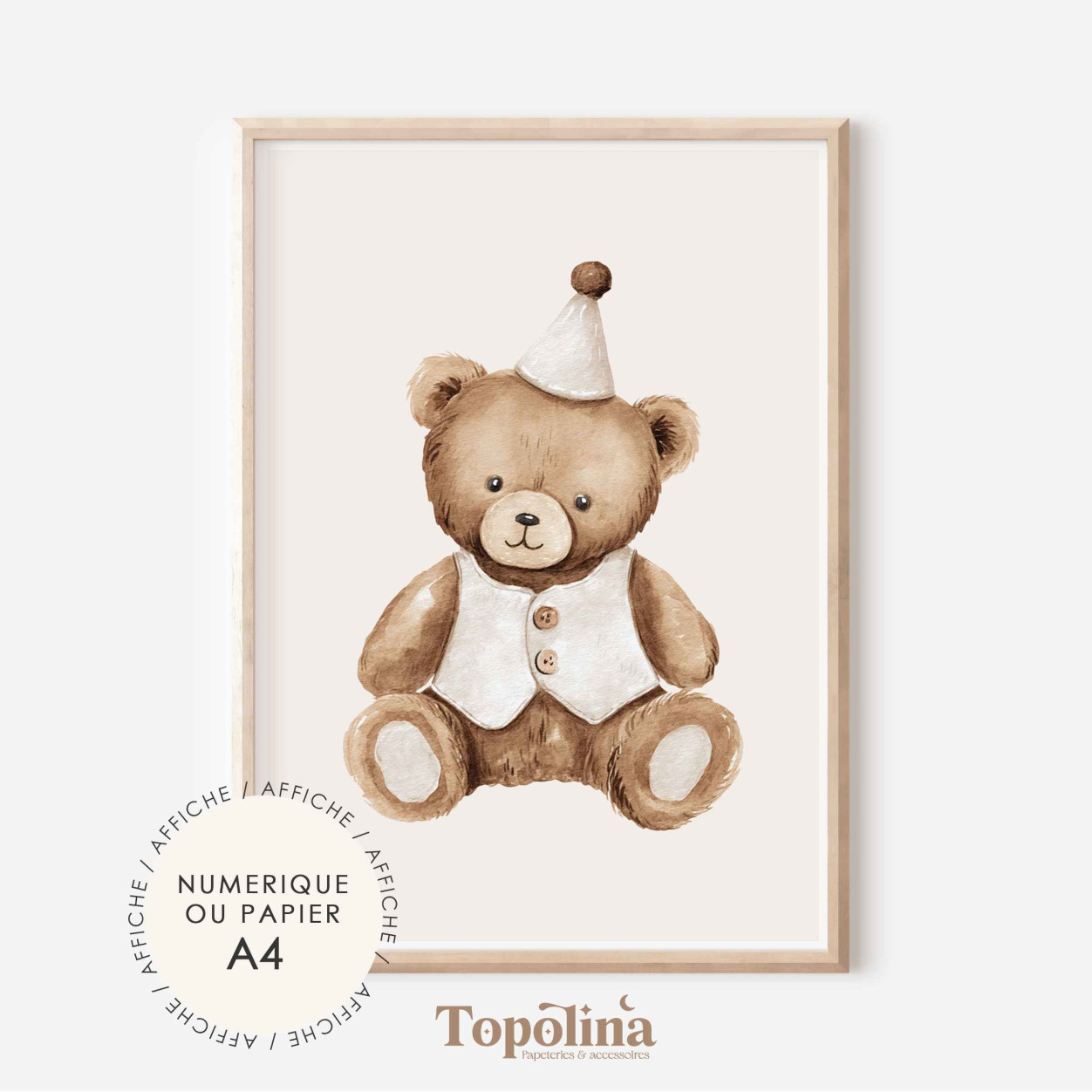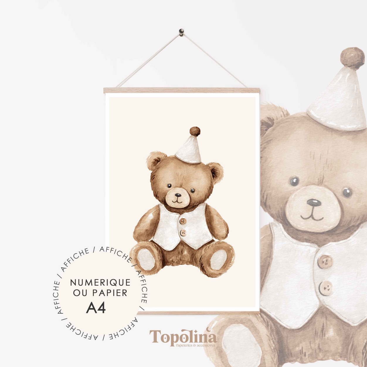 Cette affiche met en scène un adorable petit ourson au style tendre et réconfortant.