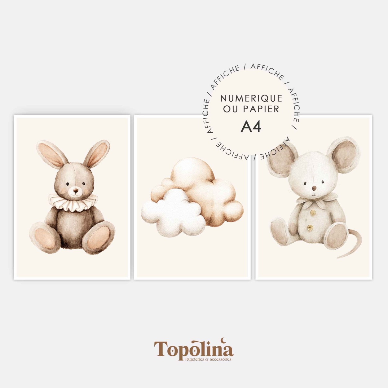 Leur style illustré, doux et joyeux plaira aussi bien aux petits qu’aux plus grands, faisant de ce lot de 3 affiches un ensemble décoratif durable et intemporel.