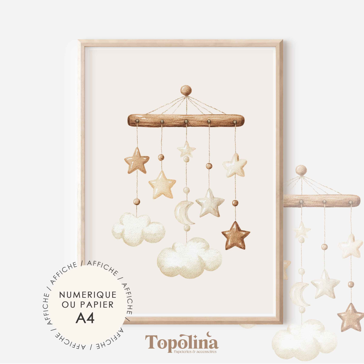 Une illustration douce et poétique, parfaite pour créer une atmosphère rassurante et chaleureuse dans une chambre de bébé ou d’enfant.