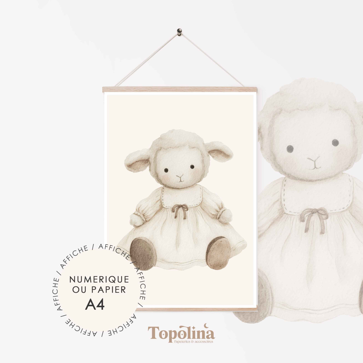 Cette affiche met en scène un adorable mouton au style tendre et délicat.