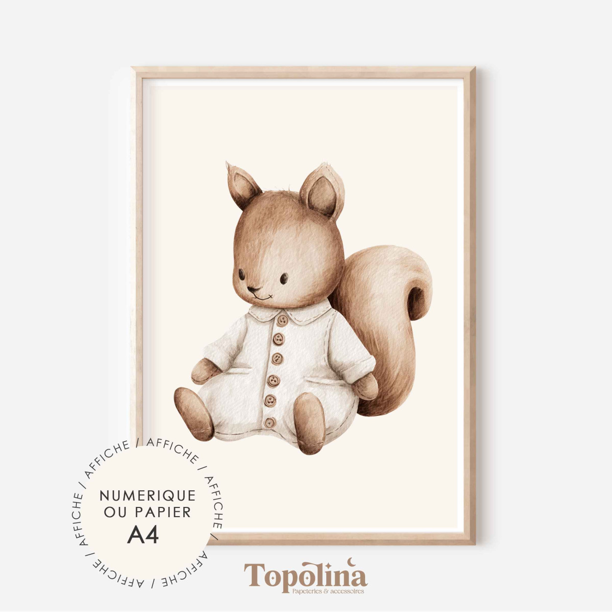 Cette affiche met en scène un joli écureuil au style tendre et délicat.