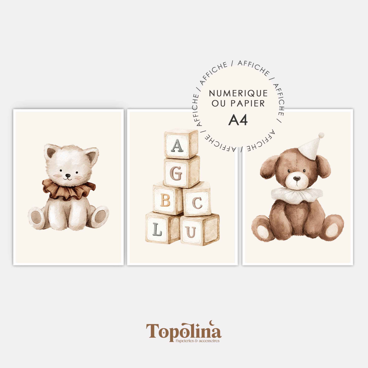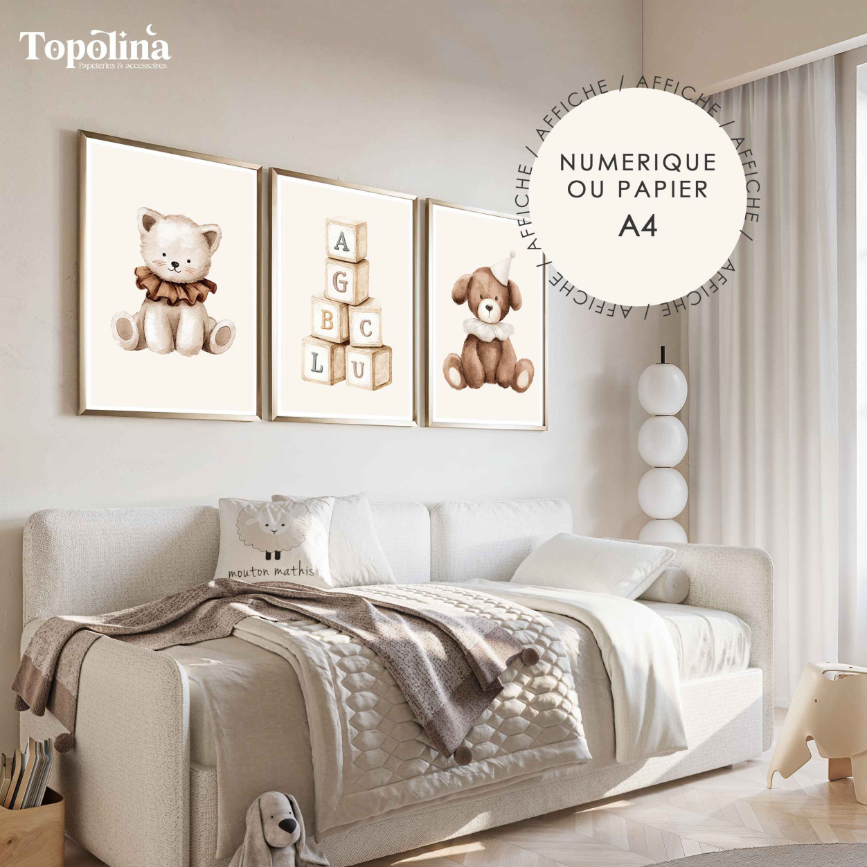Leur style illustré, doux et joyeux plaira aussi bien aux petits qu’aux plus grands, faisant de ce lot de 3 affiches un ensemble décoratif durable et intemporel.