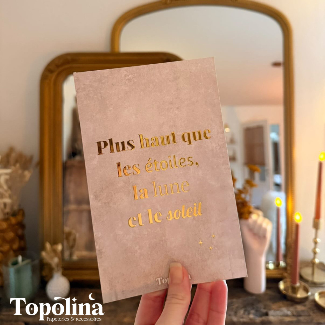 Imprimée sur un papier mat premium, cette carte est sublimée par une dorure à chaud, apportant élégance, lumière et douceur au message.