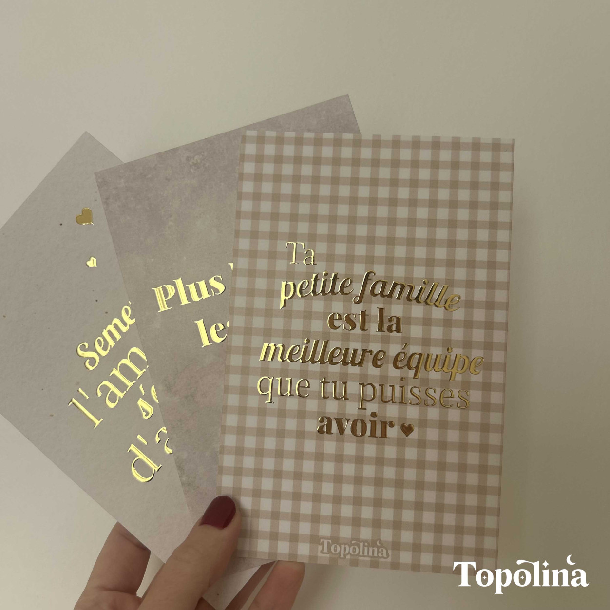 Ce trio de cartes citations familiales a été imaginé pour mettre à l’honneur ce qui compte le plus : la famille, l’amour et les liens du quotidien.