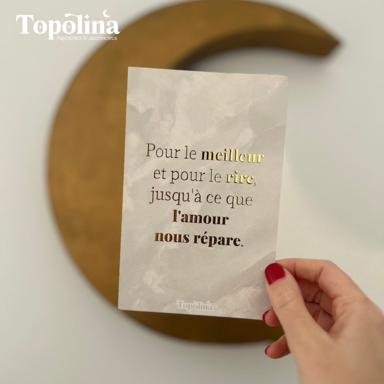 Imprimée sur un papier mat premium, cette carte est sublimée par une dorure à chaud, apportant élégance, lumière et émotion au message.