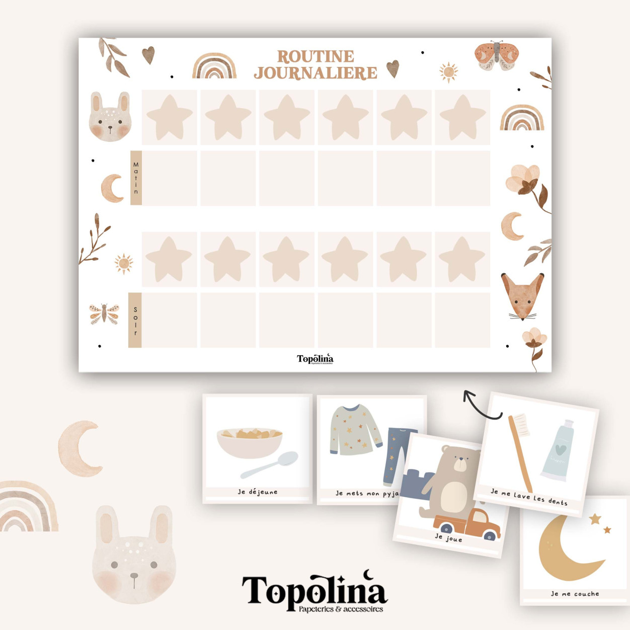 Pour aider les petits à bien démarrer et terminer leur journée, découvrez notre routine interactive matin et soir ! Grâce aux pastilles à scratch amusantes et colorées, votre enfant peut suivre ses tâches essentielles de manière ludique et autonome. Chaque étape, comme se brosser les dents, prendre son bain, s’habiller... devient une mission à accomplir.