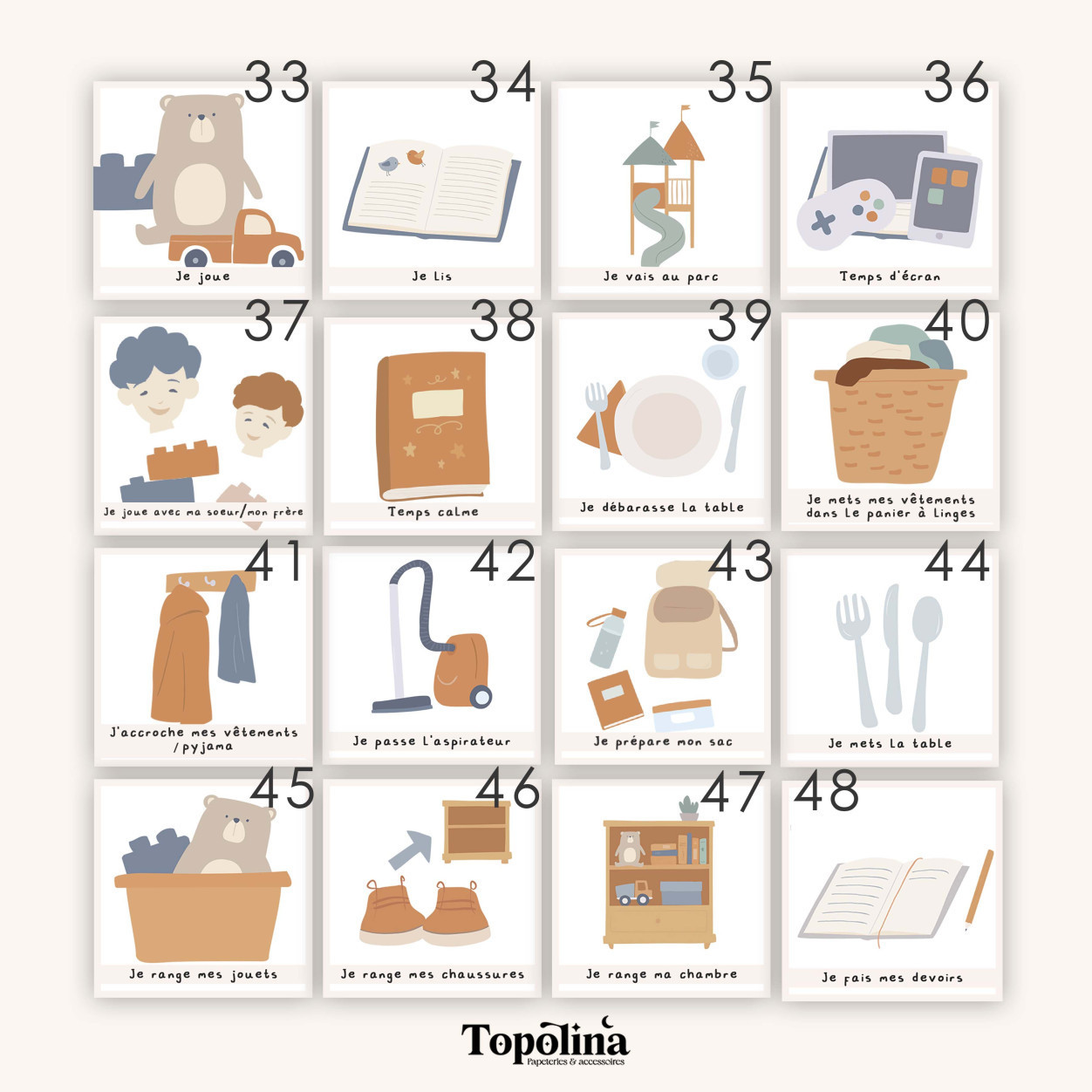 Plus besoin de répéter: l’enfant visualise facilement ce qu’il doit faire et se sent fier de décrocher ses pastilles à chaque étape complétée. Un outil pratique pour les parents et une manière amusante d'apprendre la routine pour les enfants !