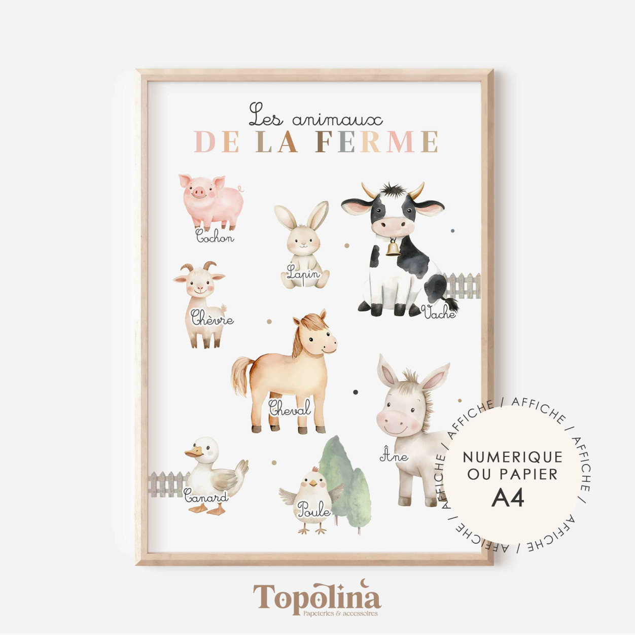 Plongez dans le monde de la ferme avec cette affiche éducative sur les animaux de la ferme. Conçue pour les enfants, cette affiche colorée et ludique présente les principaux animaux : poule, cochon, cheval, et bien d’autres.