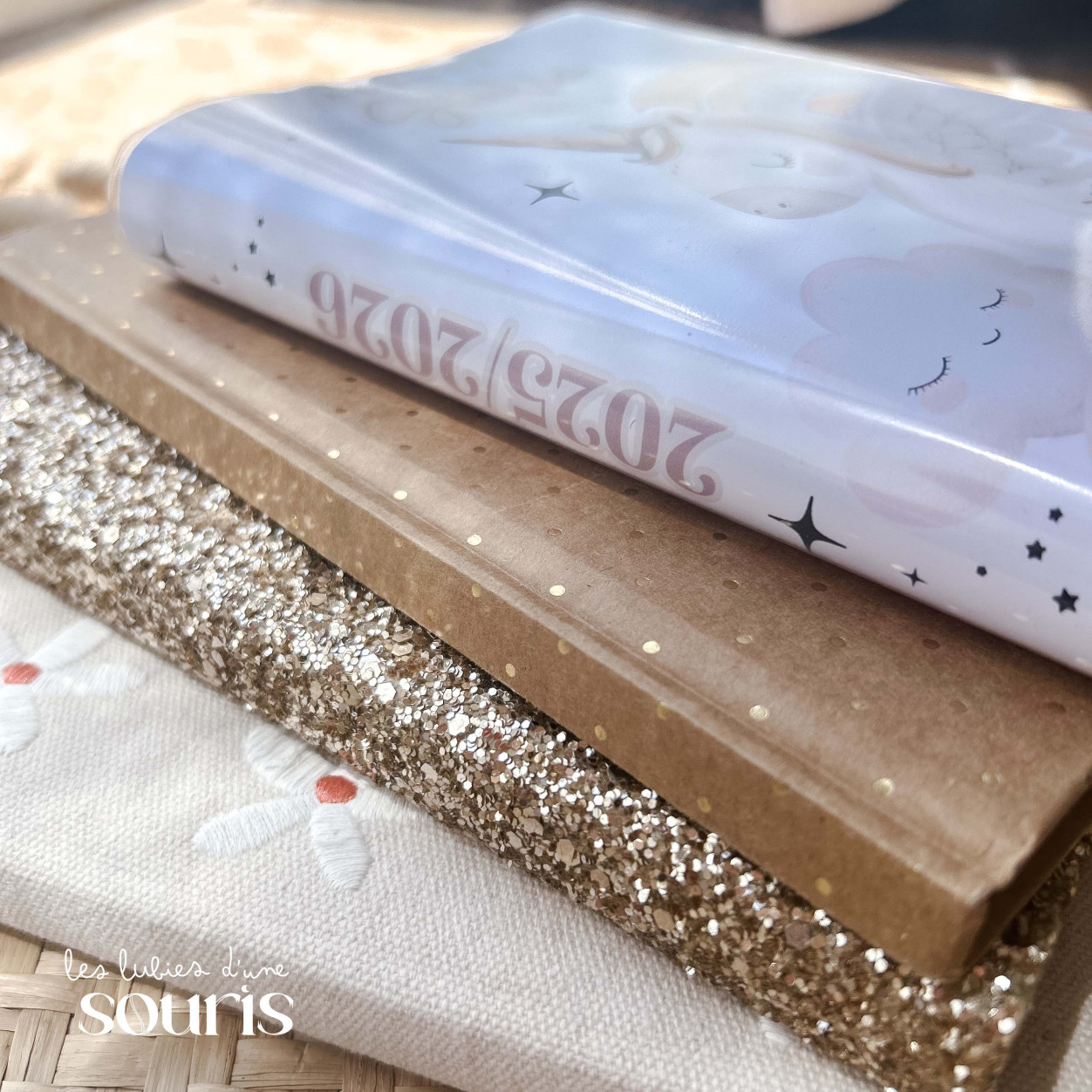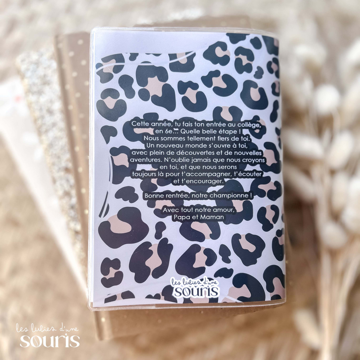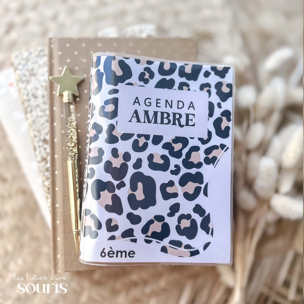Couverture entièrement personnalisable : prénom, classe, couleurs, illustrations, motifs… Le thème est au choix : animaux, arc-en-ciel, dinosaures, univers féérique, sport, espace… ou tout autre univers qui ressemble à votre enfant.
