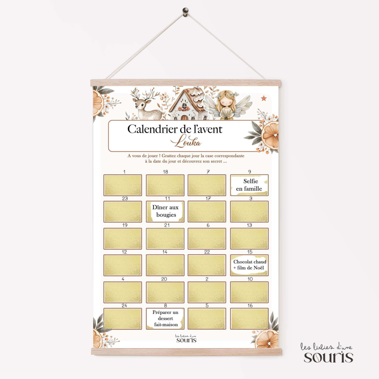 Le principe est simple, chaque jour, une case sera à gratter. Votre enfant découvrira une activité: Crêpes party, décorer le sapin, cache-cache en famille ! […] Des moments à partager mais aussi des surprises ! Ces découvertes pourront être partagées en famille et même entre fraterie.