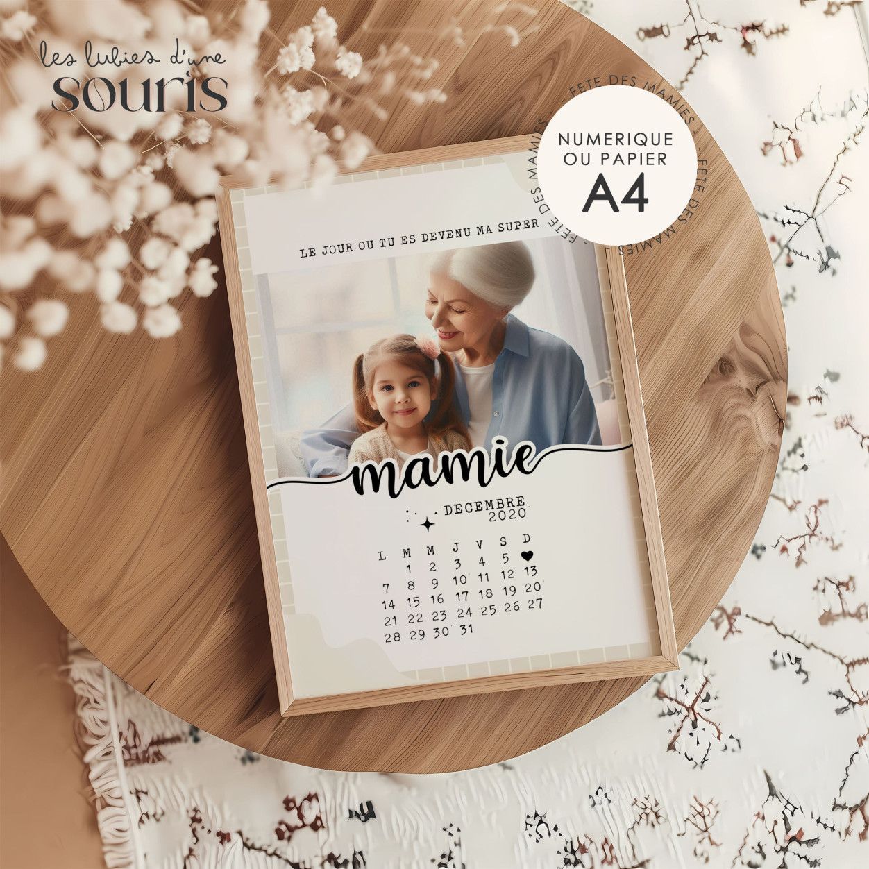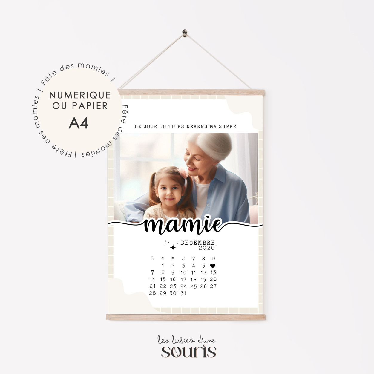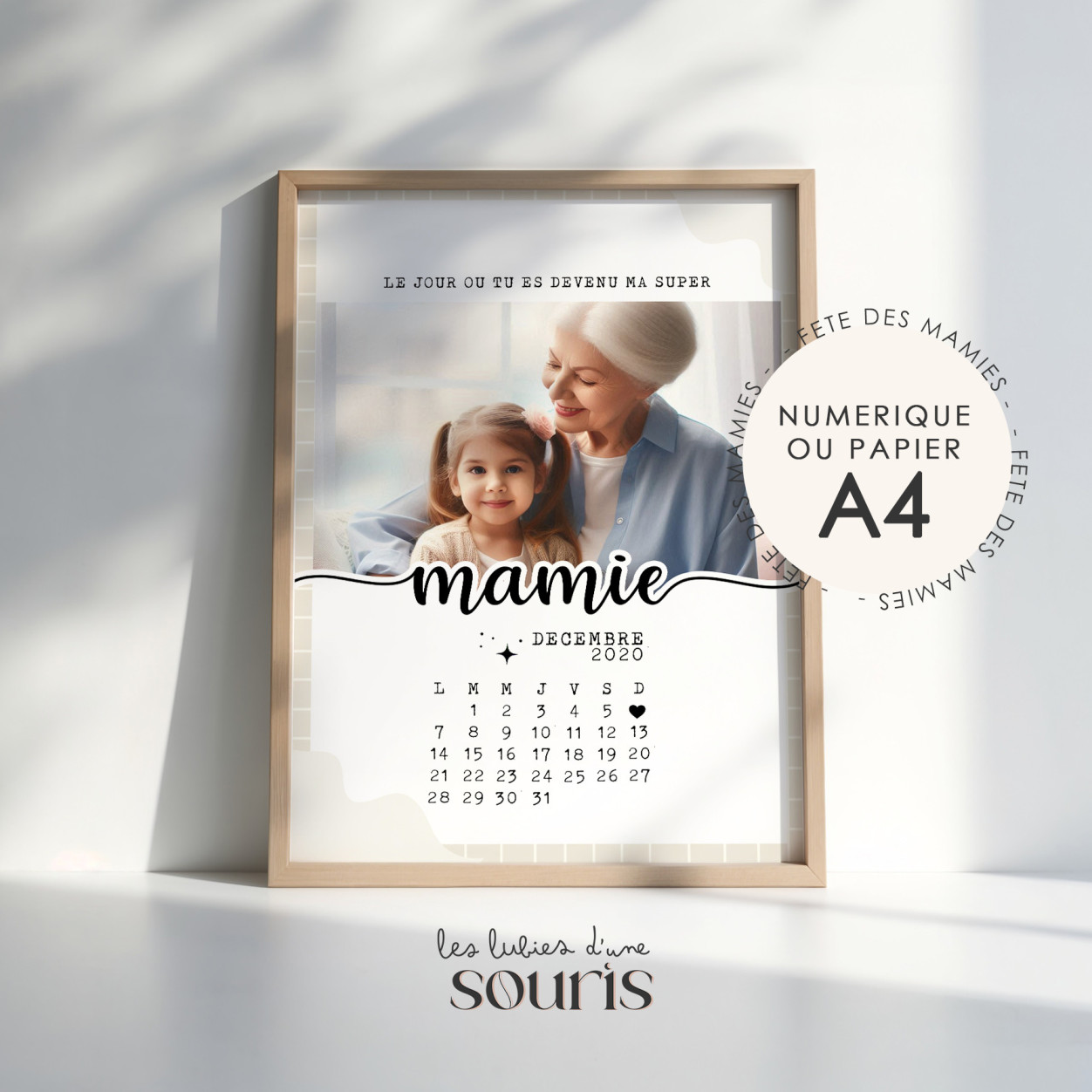 Célébrez l'amour et la complicité entre une mamie et son petit enfant avec cette affiche unique et pleine de tendresse. "Le jour où tu es devenue ma super mamie" est une manière touchante de rendre hommage à cette relation exceptionnelle, marquée par des moments d'affection, de partage et de joie.