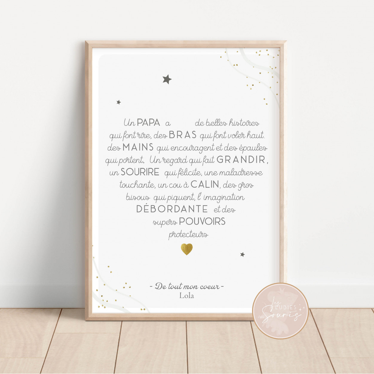 L’affiche décorative « Un papa a… », définition du papa, idéal pour rappeler à quel point nous les aimons!